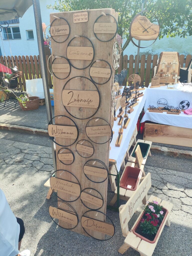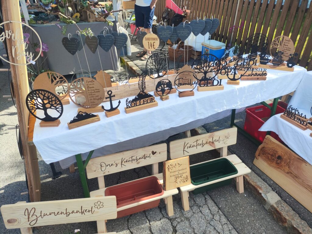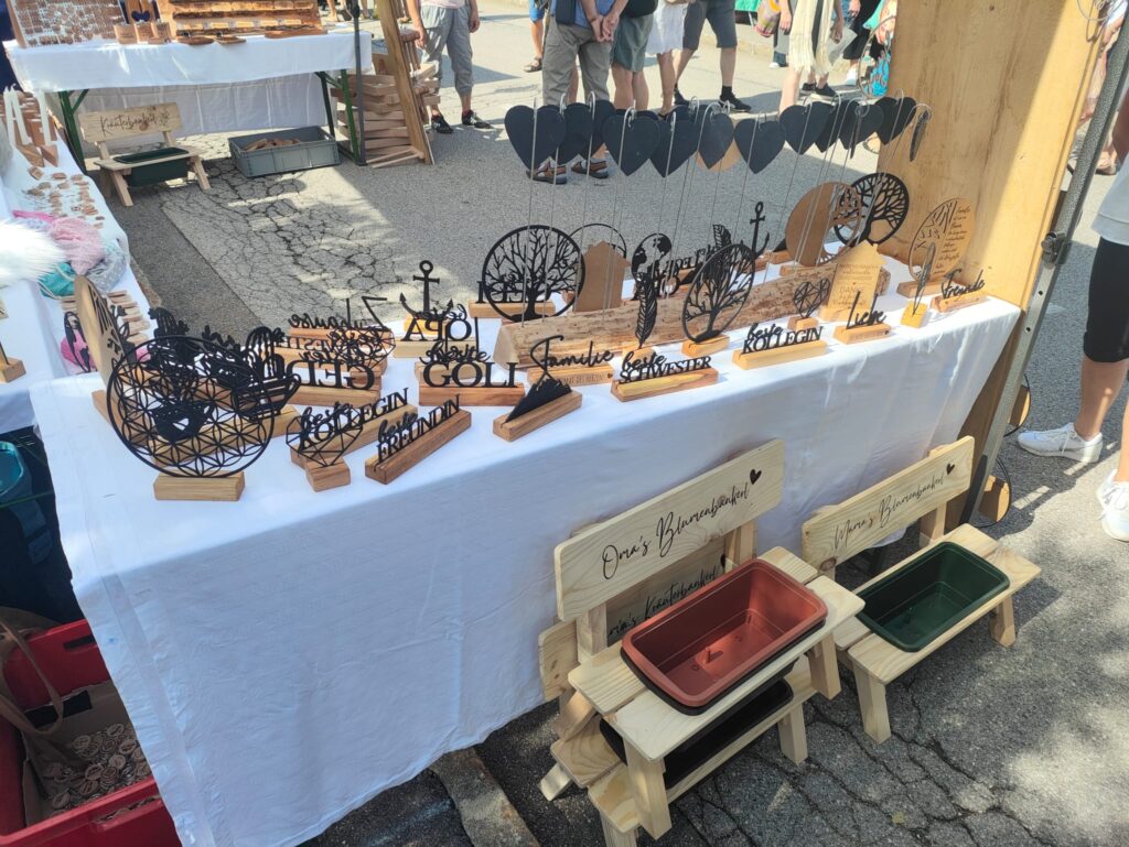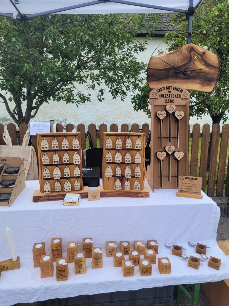 Zwischen duftenden Kräutersträußen und regionalen Schmankerln bot mein Stand einen natürlichen Kontrast: individuell gefertigte Holzprodukte, die sowohl praktisch als auch dekorativ sind. Mit dabei waren unter anderem: